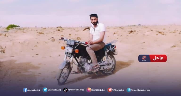 العثور على جثة بالقرب من سد درعا الشرقي، في مزارع النخلة، ويظهر عليها آثار إطلاق نار من مكان قريب، بحسب مراسل درعا 24.
